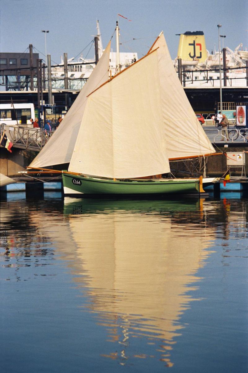 Deze gaffelkotter is een replica van een "Cotre de Carantec", een Bretoens vissersbootje, uit 1932 met prachtige beige en bruine zeilen. Een snoepje van een kustvissersbootje.
